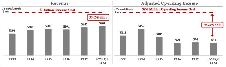 Missing key targets like this erodes investor confidence. Setting appropriate long-term targets and then executing against those targets is essential for the Company to build trust with the investment community. When long-term financial targets remain unmet, it not only leaves investors unable to forecast the business accurately, but it also undermines investor confidence in management. The unfortunate result of these missed targets is investor distrust and unwillingness on the part of the investment community to invest behind this management team.